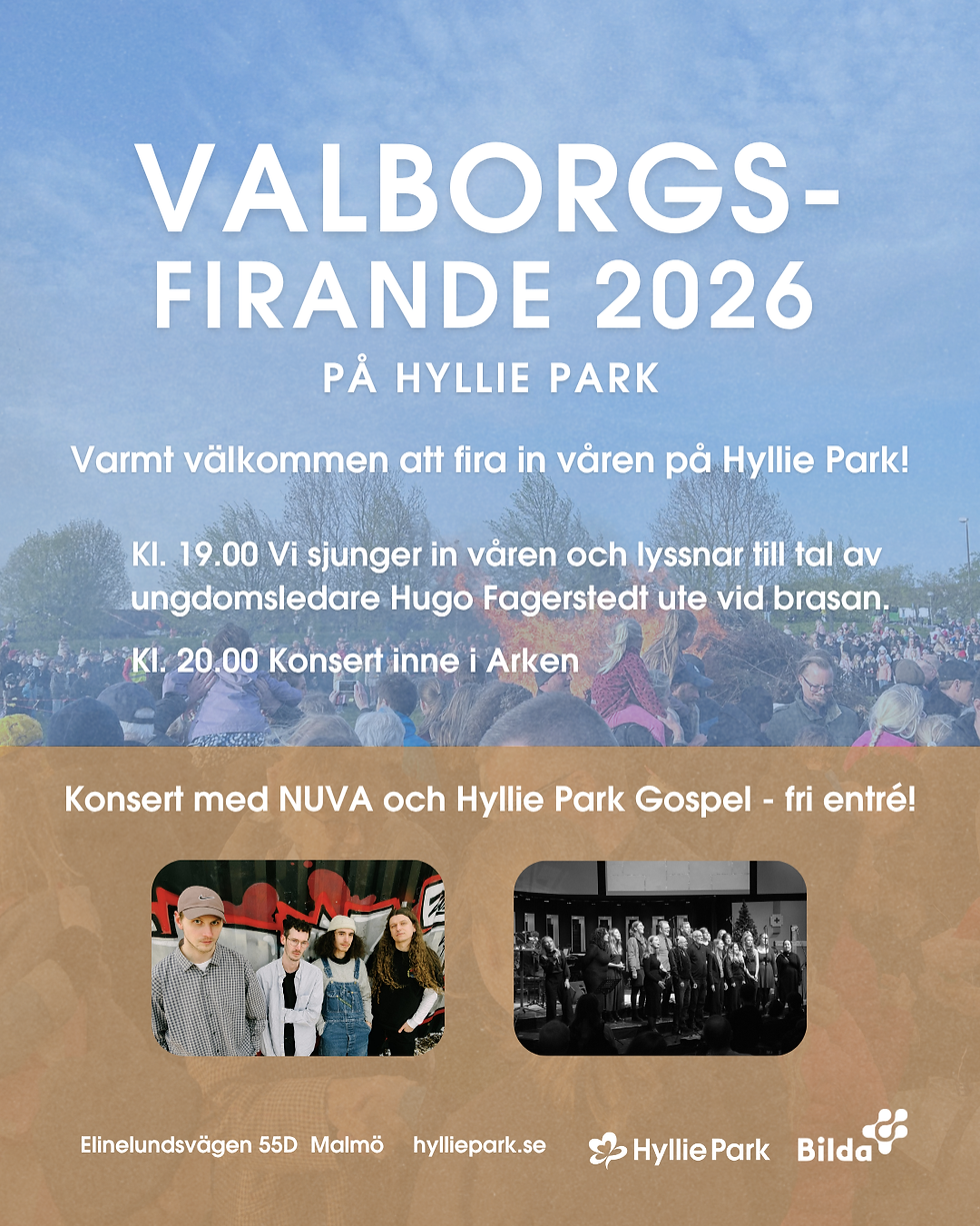 Kl. 19.00 Vi sjunger in våren och lyssnar till tal av Hyllie Park Kyrkans ungdomsledare Hugo Fagerstedt ute vid brasan.